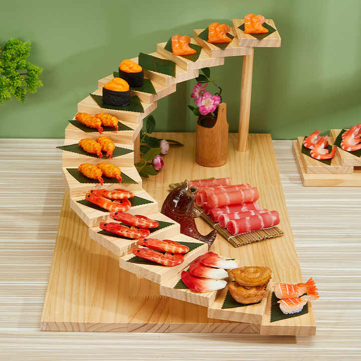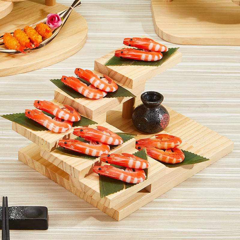 ถาดเสิร์ฟไม้เนื้อแข็งแบบญี่ปุ่น ดีไซน์บันไดหมุนได้ สร้างสรรค์ ชามสไตล์เรียบง่ายสำหรับเนื้อและเครื่องเทศ จานซูชิตกแต่ง