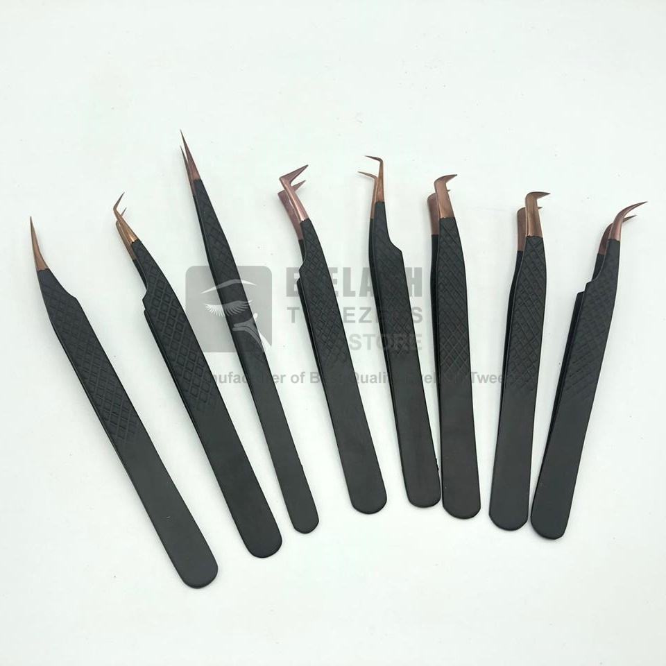 แหนบขนตาที่จับเพชรแบบญี่ปุ่นบูตเพิ่มวอลลุ่มสีดำกุหลาบปลายทองที่ยั่งยืน