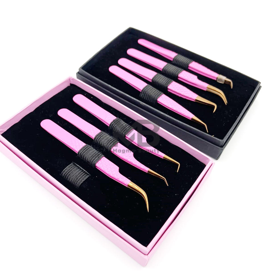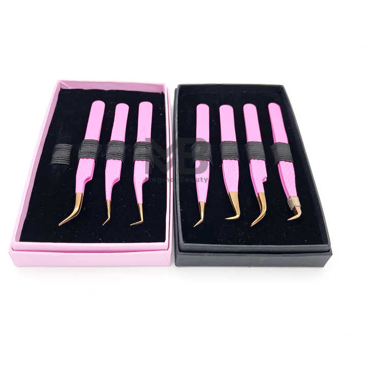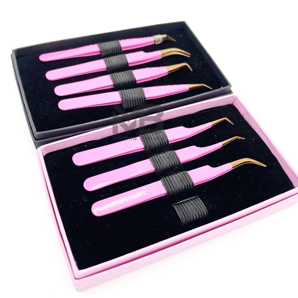 แหนบต่อขนตาสแตนเลสแบบญี่ปุ่นปลายกุหลาบเคลือบสีชมพูอ่อนพร้อมด้ามจับเพชรสั่งทำโลโก้ได้ตามต้องการ