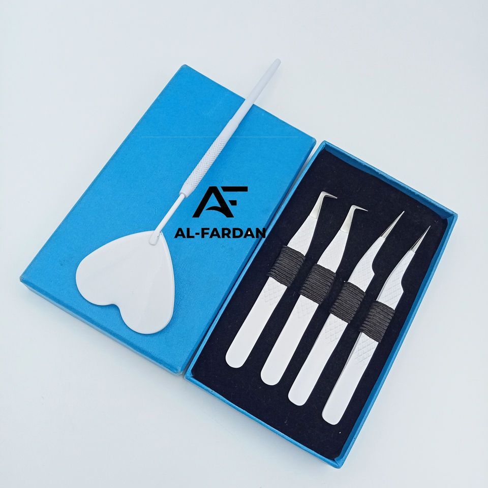 แหนบขนตาปลอมทำจากสเตนเลสปลายแหลมสูงแบบญี่ปุ่นรองเท้าบูททรงตรง90องศาพร้อมที่จับกระจกรูปหัวใจด้านสีขาว