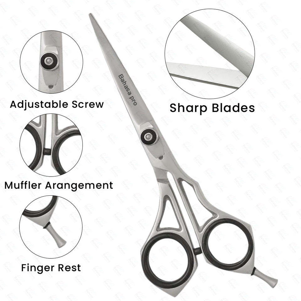 กรรไกรตัดผมสำหรับช่างตัดผมทำจากเหล็กจากญี่ปุ่นสำหรับ440C บาฮาซาโปรกรรไกรตัดผมทำโลโก้ตามสั่ง
