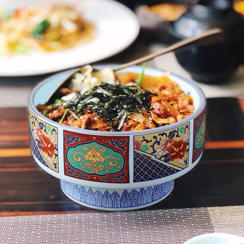 ชามเซรามิกสไตล์ญี่ปุ่นทรงสูง ดีไซน์วินเทจหรูหรา ใช้กับไมโครเวฟได้ ลายดอกไม้ เหมาะสำหรับเสิร์ฟเนื้อ ข้าว ปลาไหล ซาชิมิ