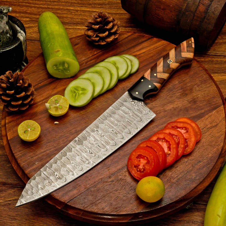 ชุดมีดเชฟเหล็กดามัสกัสสไตล์ญี่ปุ่น มีดครัวความแม่นยำสูง พร้อมดีไซน์ด้ามจับสมดุล ชุดมีดเชฟเหล็กดามัสกัส