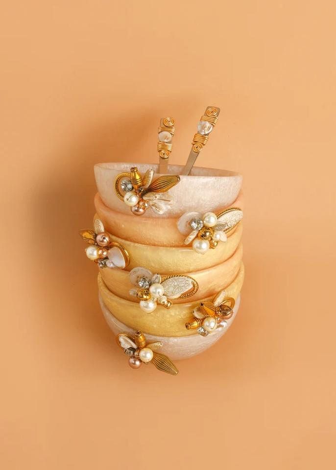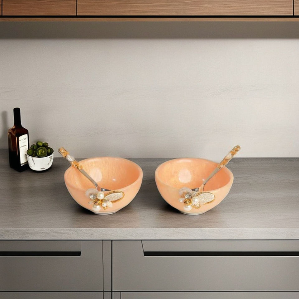Japanese Style Handcrafted Pink Resin Snack Serving Bowl Elegant Pearl and Leaf Accent Bowls for Dry Fruits, Nuts, Appetizers
