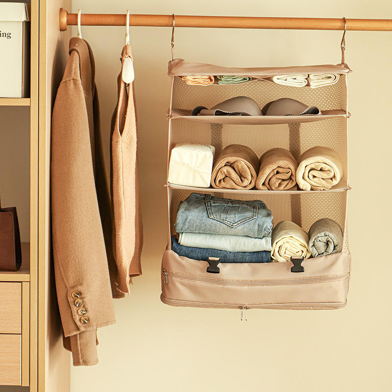ถุงเก็บเสื้อผ้าแบบแขวนสามชั้นสไตล์ญี่ปุ่น พับเก็บได้ พกพาสะดวก ผ้าไม่ทอ รูปทรงสี่เหลี่ยมผืนผ้า พร้อมตะขอ