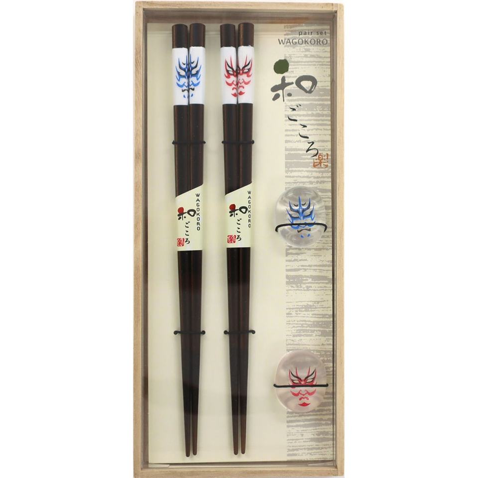 ชุดตะเกียบคาบูกิสไตล์ญี่ปุ่น2คู่พร้อมที่วางตะเกียบที่วางตะเกียบสำหรับอาหารค่ำสุดหรู