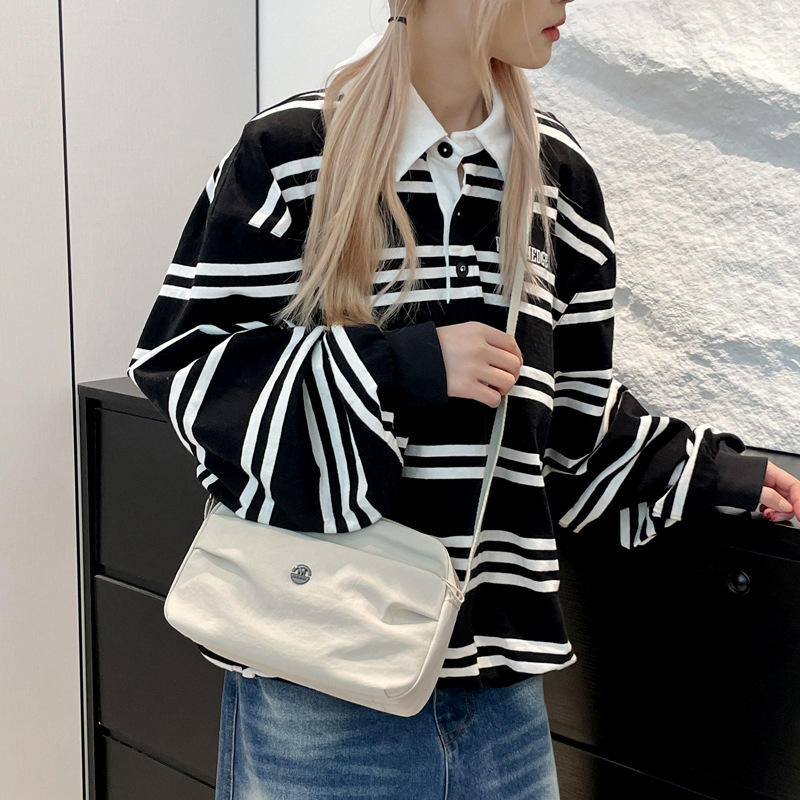 กระเป๋าสะพายข้างไนลอนสไตล์มินิมอลสไตล์ญี่ปุ่นสำหรับผู้หญิงสีเบจทรงสี่เหลี่ยมแนวนอนกันน้ำกระเป๋าสะพายสำหรับเดินทางทุกวัน