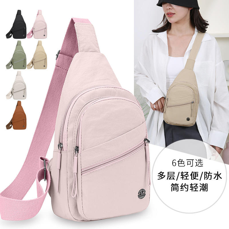 กระเป๋าคาดหน้าอกสไตล์มินิมอลสไตล์ญี่ปุ่นสำหรับผู้หญิงหลายช่องมีซิปปิดสีทึบกระเป๋าสะพายลำลองสำหรับทุกวัน