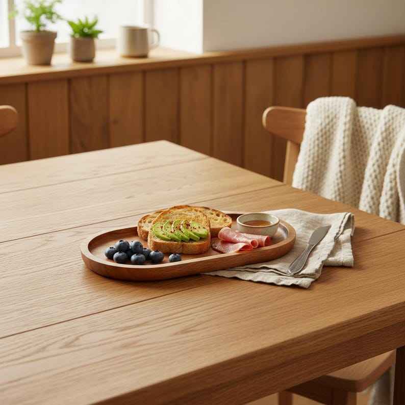 ถาดเสิร์ฟไม้บีชทรงรีสไตล์ญี่ปุ่น สำหรับเสิร์ฟกาแฟ นม ขนม เค้ก ชีส ผลไม้ อาหาร สำหรับเด็ก