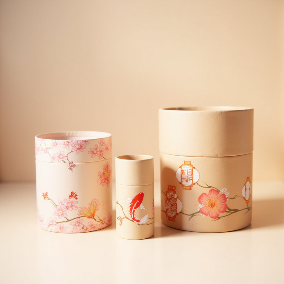 หลอดเทียนกระดาษสไตล์ญี่ปุ่นกล่องใส่เทียนทรงกระบอกทำจากกระดาษแข็งย่อยสลายได้พิมพ์ลายปั๊มไวน์วิสกี้