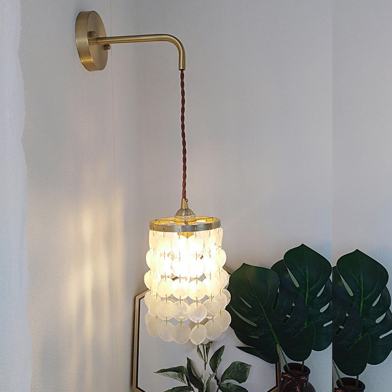 โคมไฟติดผนังสไตล์ญี่ปุ่นย้อนยุคแบบนอร์ดิก ดีไซน์เปลือกหอยคริสตัลตกแต่ง สำหรับห้องนอน โคมไฟติดผนังแบบข้ามพรมแดน