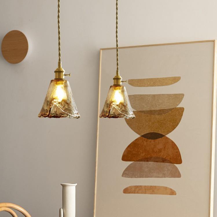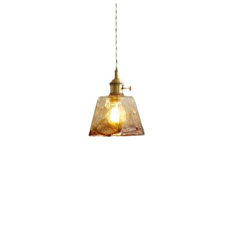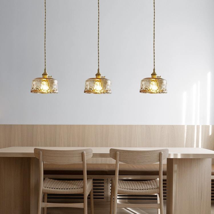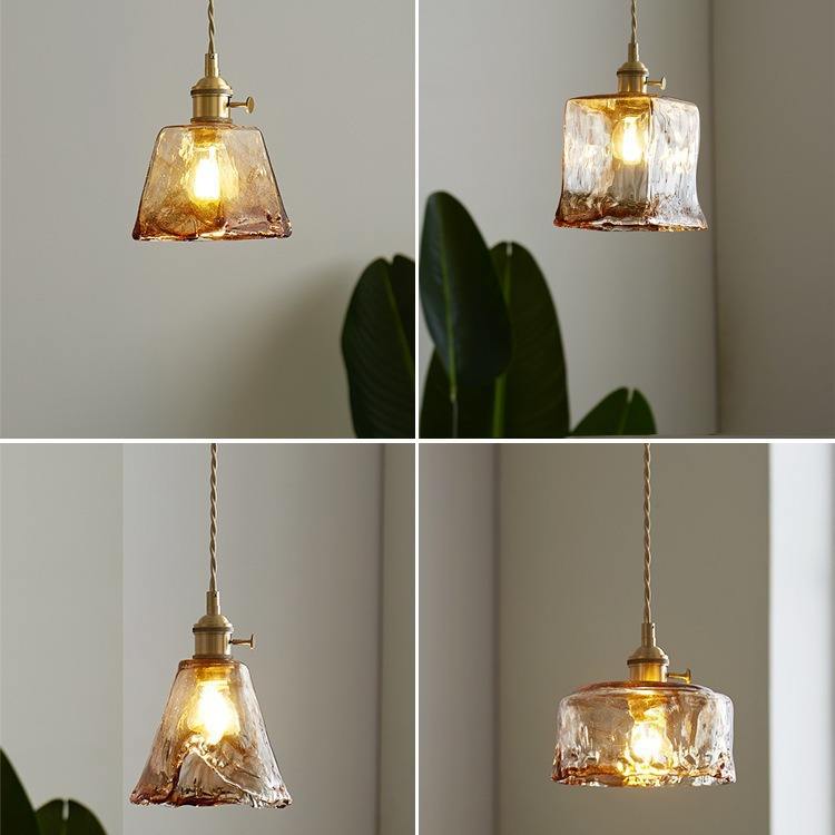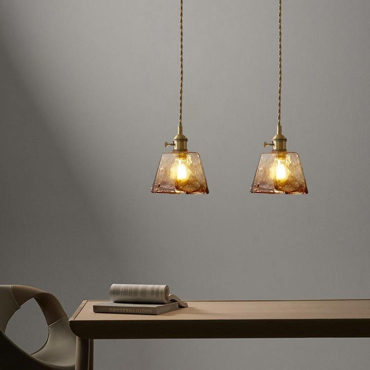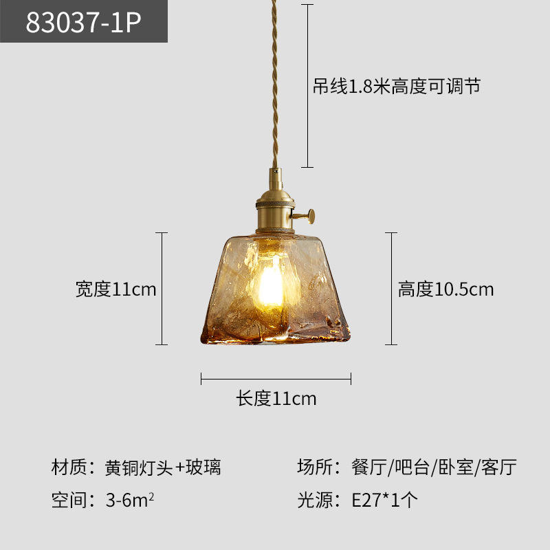โคมไฟแขวนแก้วทองแดงสไตล์ญี่ปุ่นย้อนยุค พร้อมโครงไม้วอลนัทอเมริกัน เหมาะสำหรับเคาน์เตอร์บาร์ ร้านอาหาร ร้านกาแฟ โคมไฟข้างเตียง ใช้ในบ้าน