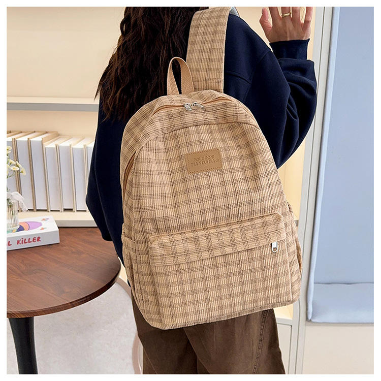 กระเป๋าเป้สะพายหลังลายสก๊อตสไตล์ญี่ปุ่นย้อนยุค ความจุขนาดใหญ่ น้ำหนักเบา เหมาะสำหรับนักเรียนมัธยมต้น สำหรับฤดูใบไม้ร่วงและฤดูหนาว