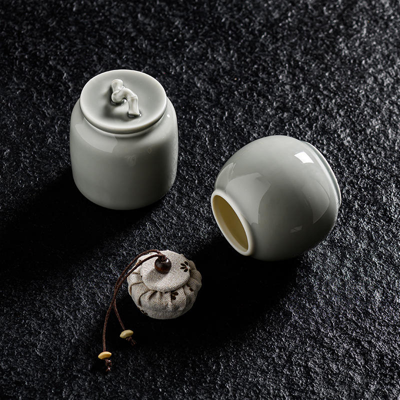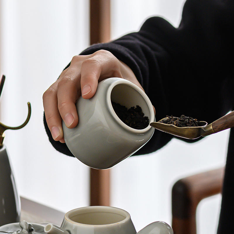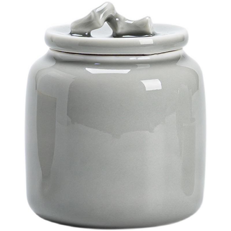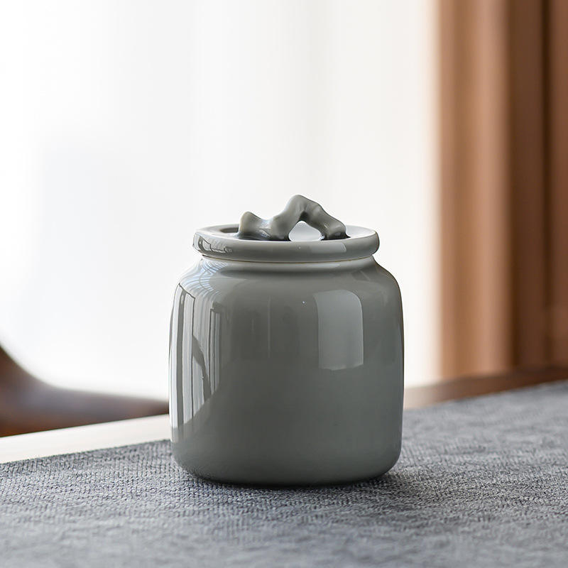 กาน้ำชาเซรามิกขนาดเล็กแบบพกพาสไตล์ญี่ปุ่นกระป๋องชาขนาดเล็กเคลือบด้วยหมึกสีเทาน้ำแข็งปิดผนึกสำหรับการจัดเก็บ