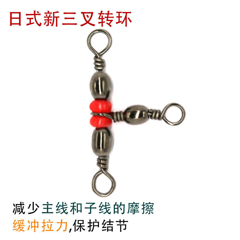 ตัวเชื่อมต่อเบ็ดตกปลาแบบสามง่าม ผลิตจากเหล็กกล้าคาร์บอนสีแดง สำหรับตกปลาในน้ำจืด แบบตาต่อตา สไตล์ญี่ปุ่น