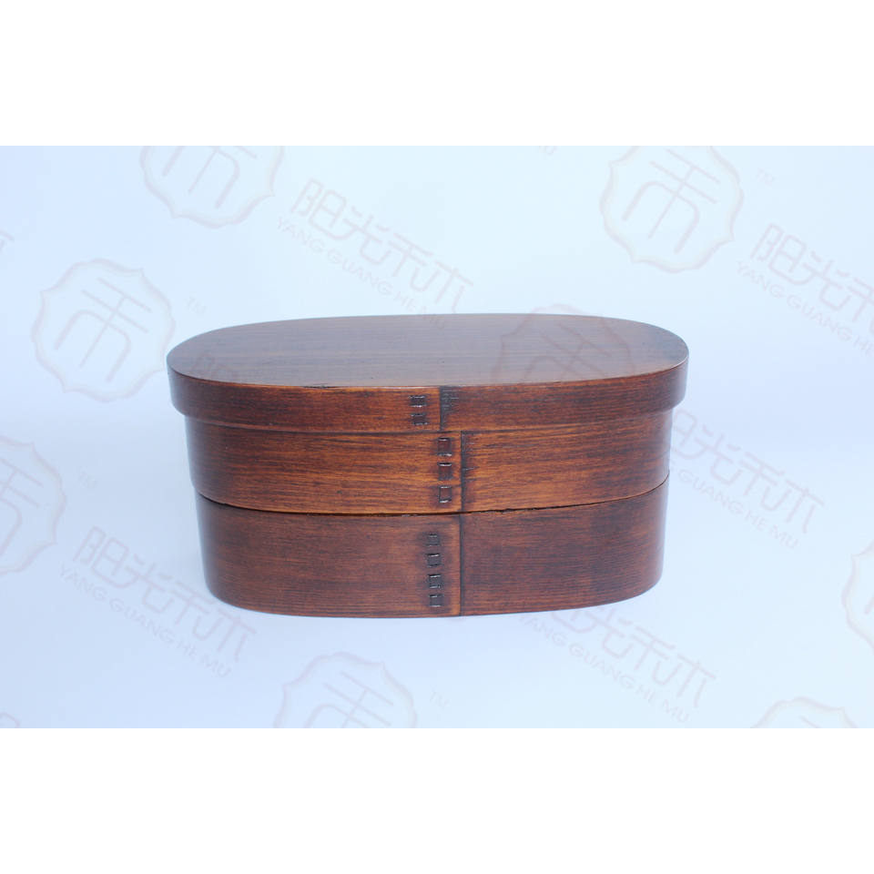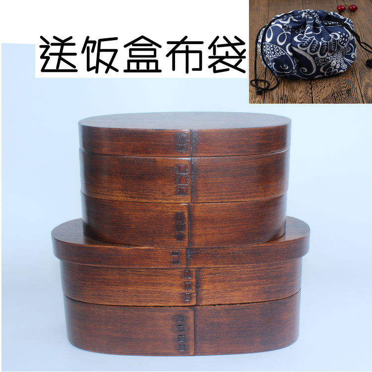 กล่องเบนโตะไม้สไตล์ญี่ปุ่นรูปทรงไข่กล่องอาหารกลางวันสองชั้นกล่องขนมอเนกประสงค์นักเรียนใช้ขนาดใหญ่