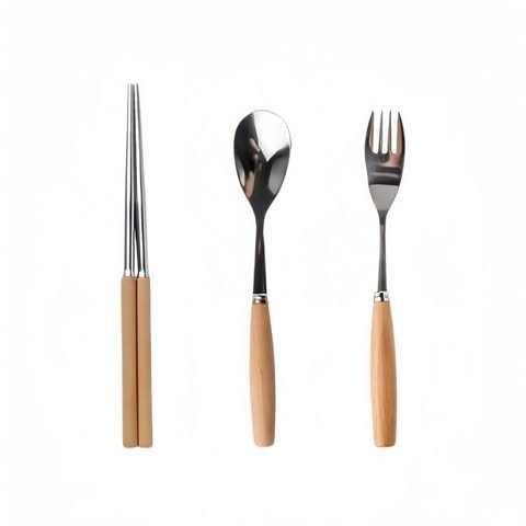 ชุดช้อนและส้อมด้ามไม้สไตล์ญี่ปุ่น วัสดุสแตนเลสคุณภาพพรีเมียม