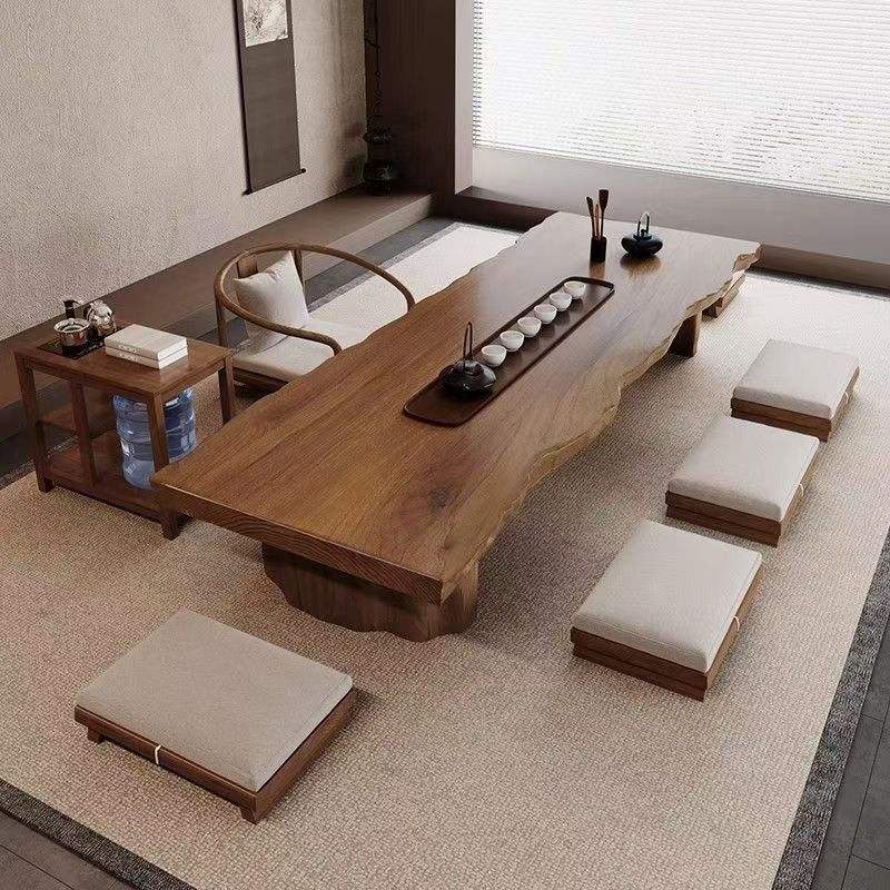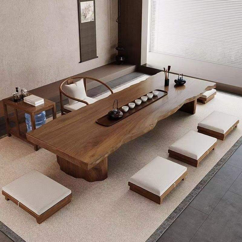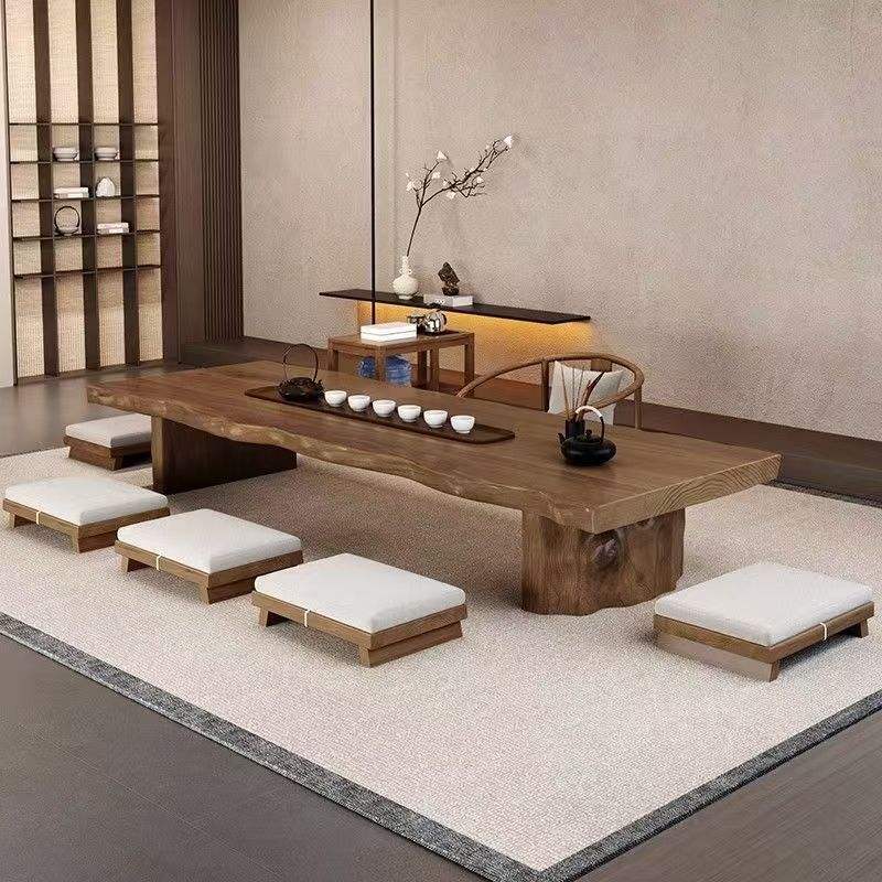 โต๊ะกาแฟไม้แผ่นเดียวสไตล์ญี่ปุ่น ทำด้วยมือ โต๊ะน้ำชาเตี้ย สำหรับห้องนั่งเล่นหรือใช้ในห้องประชุม