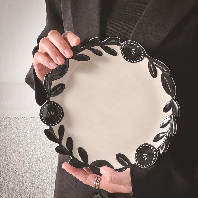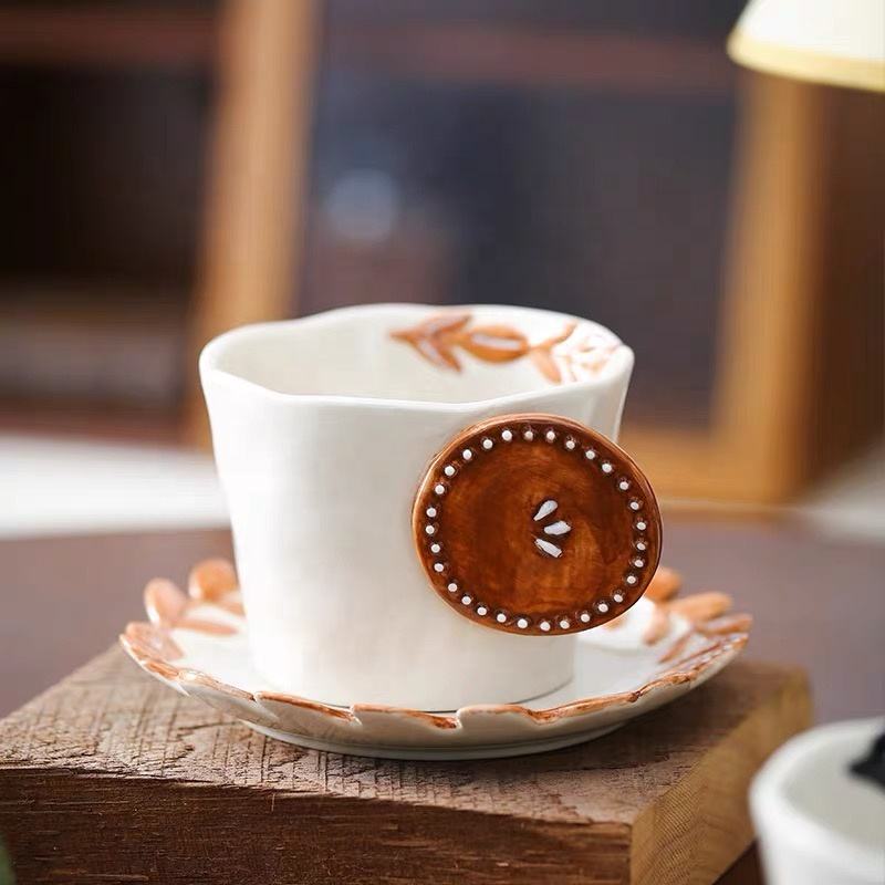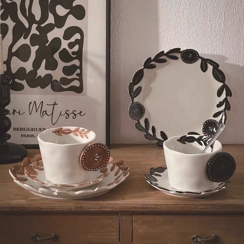 Japanese Vintage Flower Rattan Leaf Ceramic Tea Cup and Saucer Set Porcelain Creative 300ml Coffee Latte Cup With Saucer