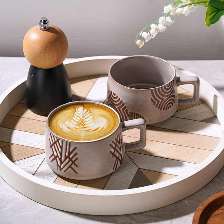 ชุดจานรองถ้วยทำจากหินสไตล์วินเทจสไตล์ญี่ปุ่นสำหรับใส่น้ำชายามบ่ายถ้วยลาเต้คลาสสิกสวยงาม