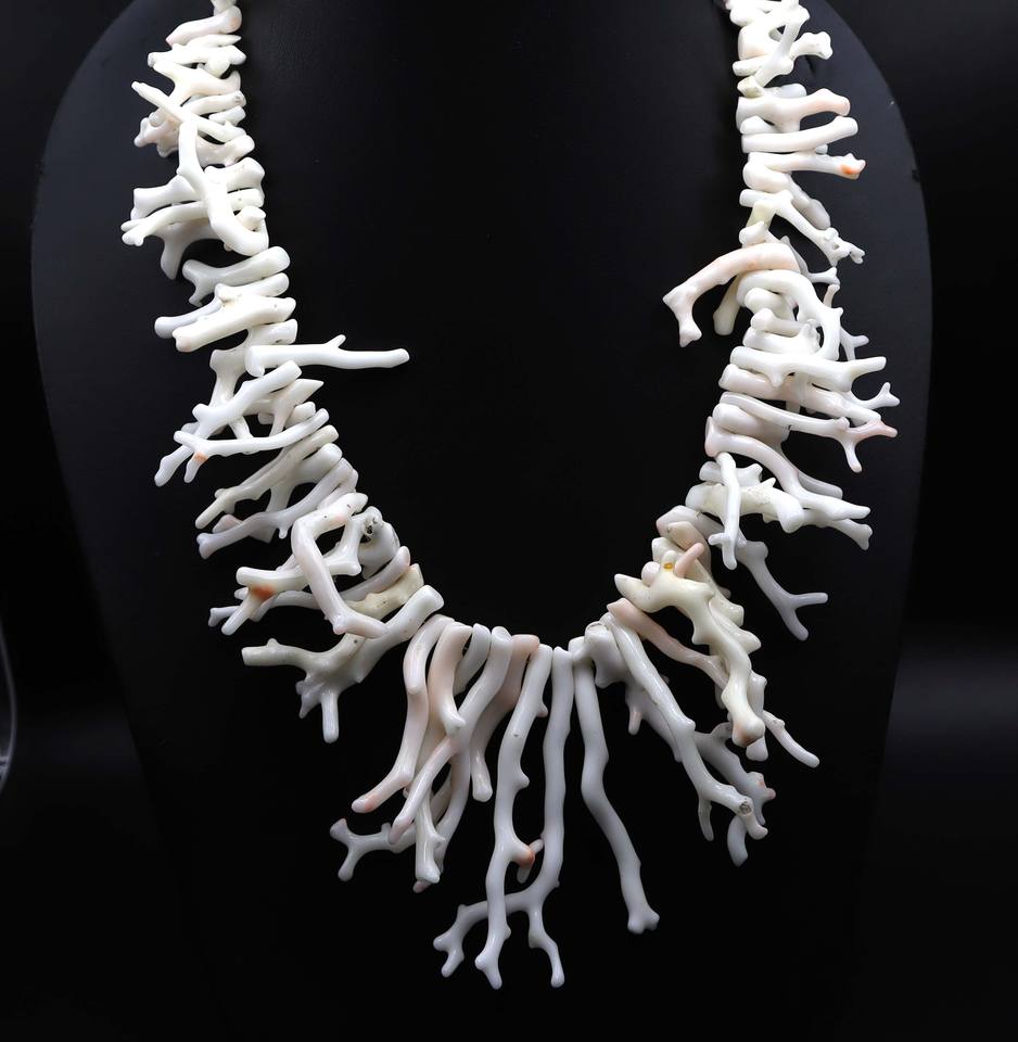 สร้อยคอปะการังธรรมชาติสีขาวแบบญี่ปุ่นลูกปัดหินอัญมณีขัดเงาสร้อยคอปะการังสีขาว