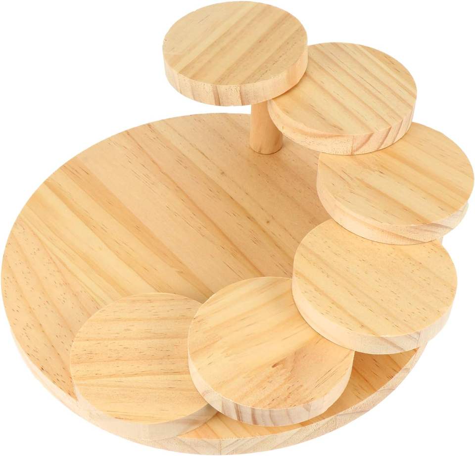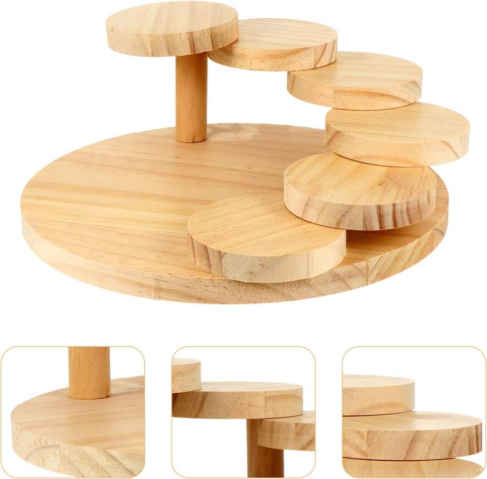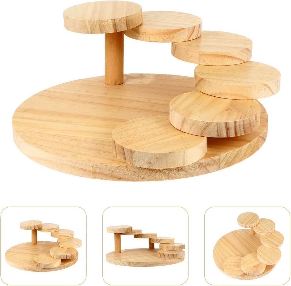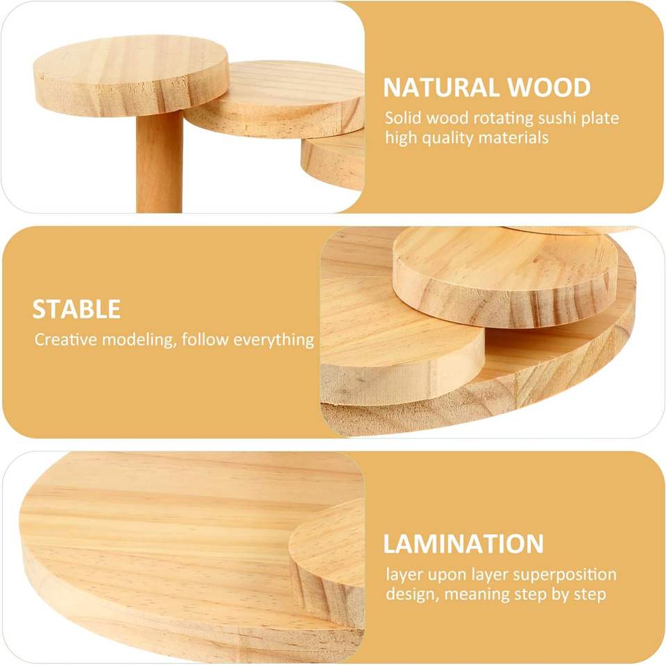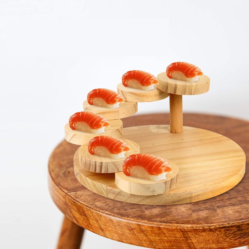 ถาดเสิร์ฟซูชิไม้ญี่ปุ่นแบบหมุนได้ ดีไซน์สร้างสรรค์ รูปทรงบันได สำหรับเสิร์ฟเนื้อและถาดซูชิไม้กลม