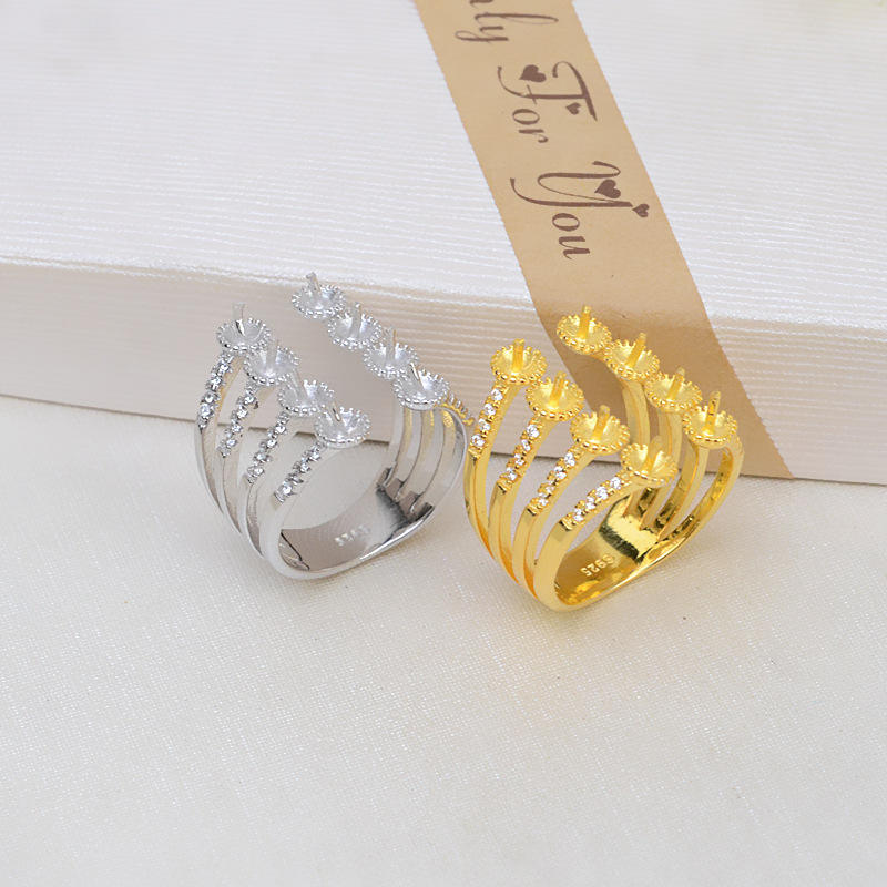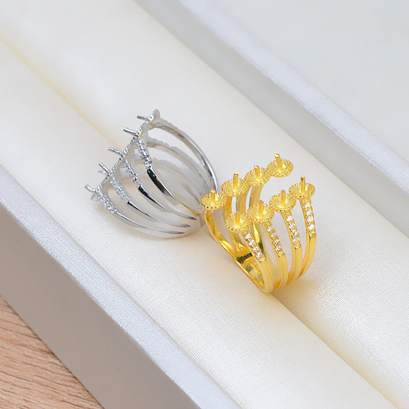 แหวนเงินแท้ S925 แบบเปิดปาก ปรับขนาดได้ สไตล์ญี่ปุ่นและเกาหลี พร้อมลูกปัด 5-6 เม็ด หรือ 8 เม็ด สำหรับทำเครื่องประดับมุก DIY