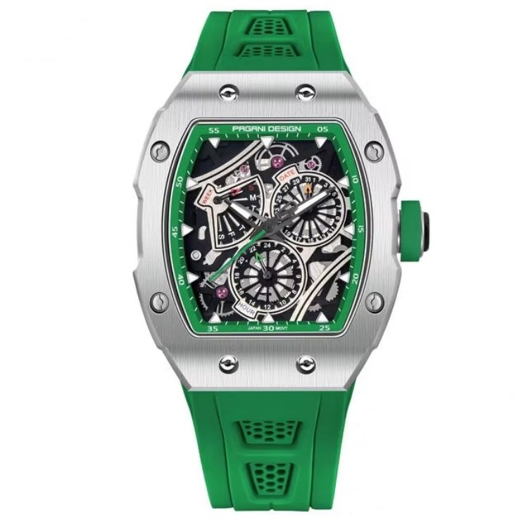 ลักษณะ:โครโนกราฟ, ประดาน้ำ, หลายโซนเวลา, กันน้ำ, กันน้ำ, เรืองแสง, มือส่องสว่าง, ช็อตทน, กลวงออก