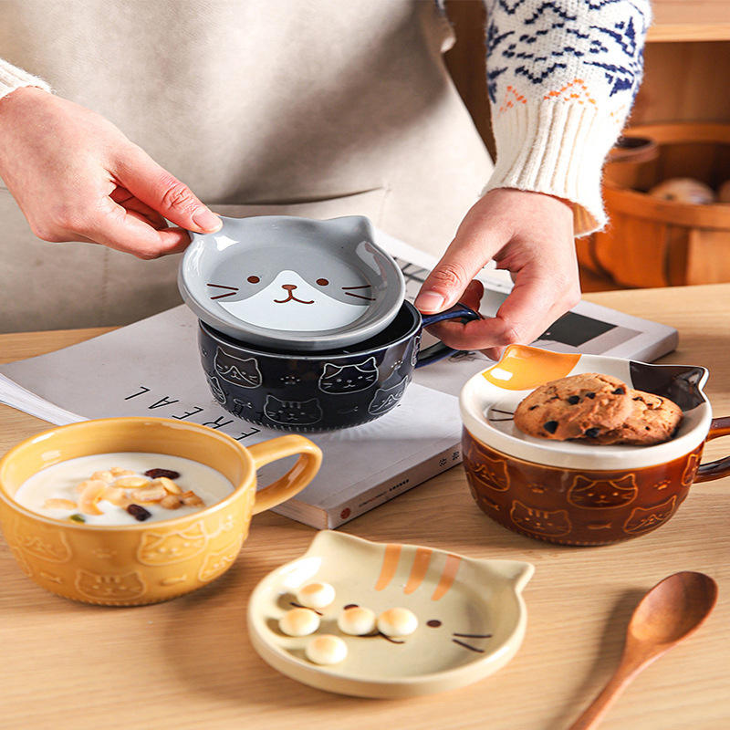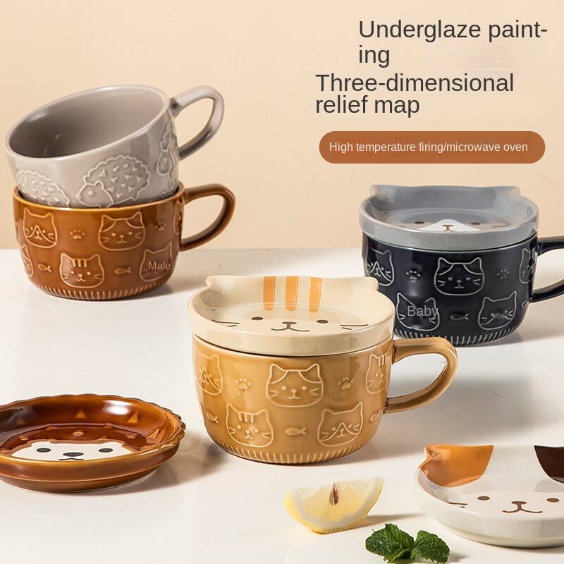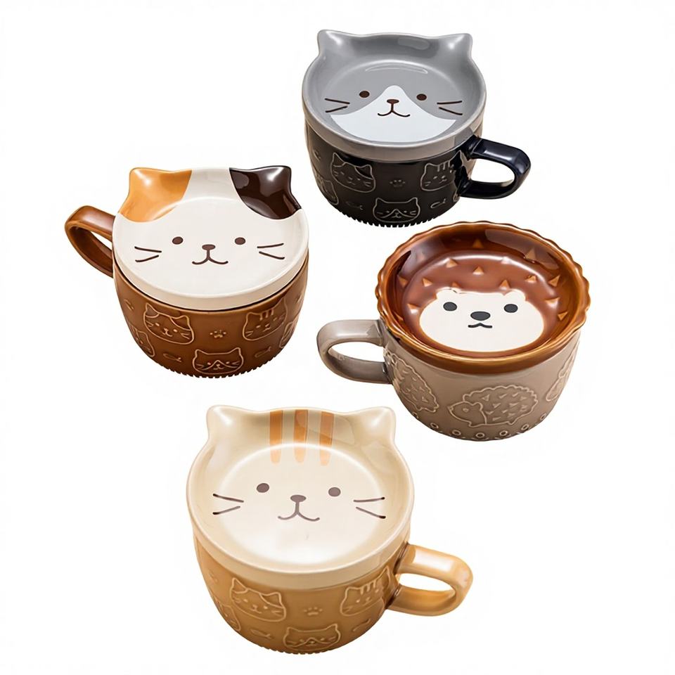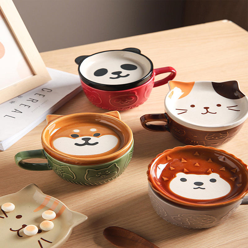 แก้วเซรามิคลายการ์ตูนแมวและหมีน่ารักสไตล์ญี่ปุ่นจากเฉาโจว สำหรับกาแฟและนมตอนเช้า