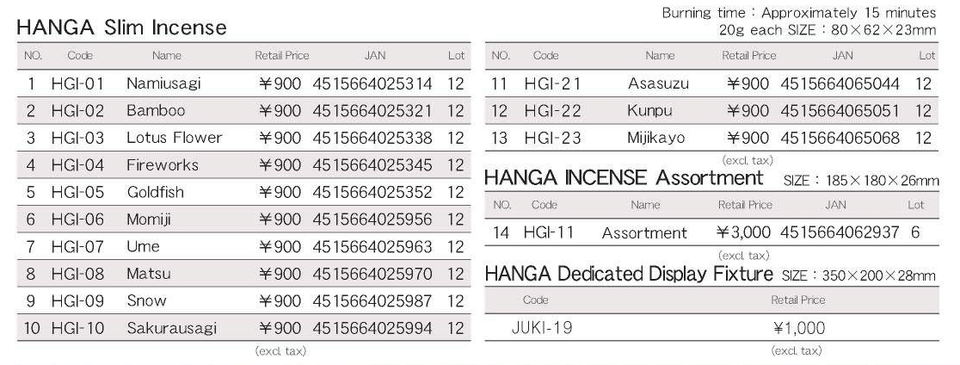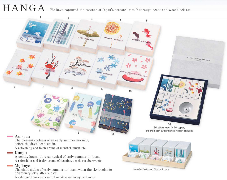 ชุดธูปหอมสไตล์ญี่ปุ่น กลิ่นบัว ไผ่ พลัม สน กลิ่นดอกไม้สดชื่น น้ำหอมสำหรับบ้าน ของขวัญ ซีรีส์ HANGA
