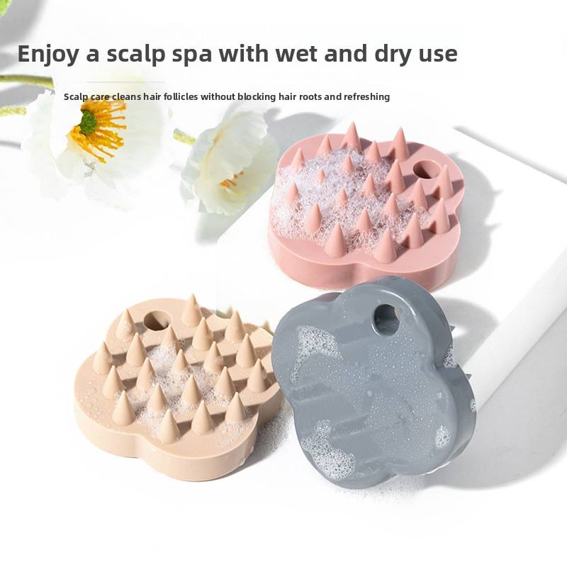 แปรงนวดหนังศีรษะซิลิโคนรูปใบโคลเวอร์สี่แฉกแบบญี่ปุ่น ใช้ได้ทั้งแบบเปียกและแห้ง สำหรับผู้ชายและผู้หญิง