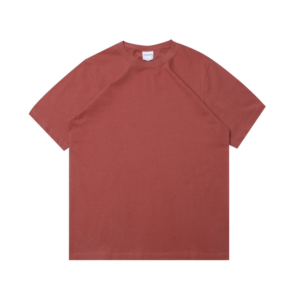 เสื้อยืดคอกลมแขนสั้นสีพื้นสไตล์ญี่ปุ่นสำหรับผู้ชายคอกลมผ้าคอตตอนแท้ทรงหลวม