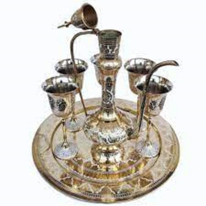 Japani Carved Brass Dallah Aftaba Elegant Coffee & Tea Set