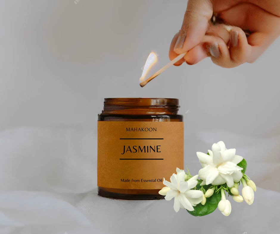 เทียนหอมกลิ่นมะลิผสมน้ำมันหอมระเหย 100 กรัม เทียนหอมปรับแต่งกลิ่นได้ตามต้องการ เทียนถั่วเหลืองคุณภาพพรีเมียมจากประเทศไทย