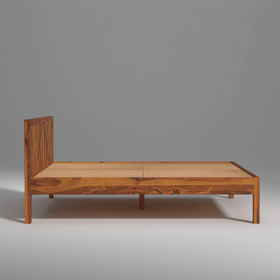 เตียงไม้สักแท้ดีไซน์ทันสมัย รุ่นจัสมิน แบบไม่มีที่เก็บของ สีไลท์ฮันนี่ เฟอร์นิเจอร์ห้องนอนคุณภาพสูง