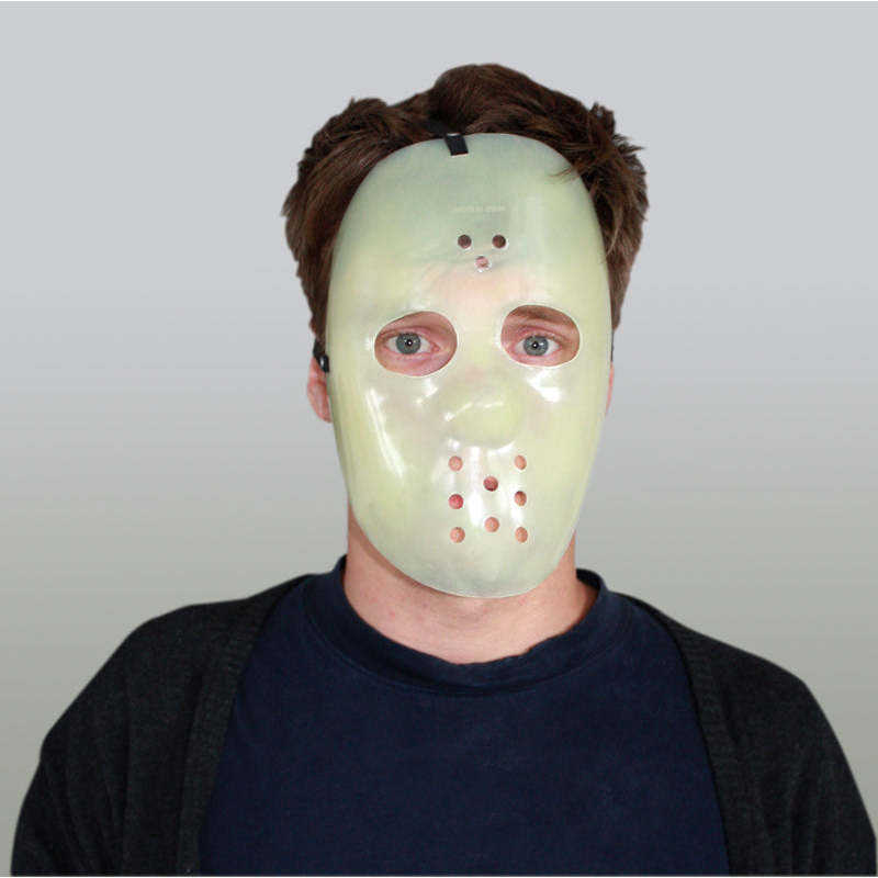 หน้ากากฮอกกี้เรืองแสงในที่มืด Jason Glow ทำจากพลาสติก พร้อมไฟ LED สำหรับแต่งตัวเป็นตัวตลก ใช้ในงานปาร์ตี้ฮาโลวีน งานพรอม รูปทรงผี
