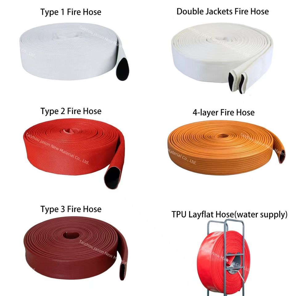 สายดับเพลิงยางเคลือบผ้าใบ Jason High Pressure ขนาด 25 มม. 38 มม. 51 มม. 65 มม. 77 มม. 100 มม. 125 มม. 150 มม. 200 มม. พร้อมข้อต่อทุกชนิด
