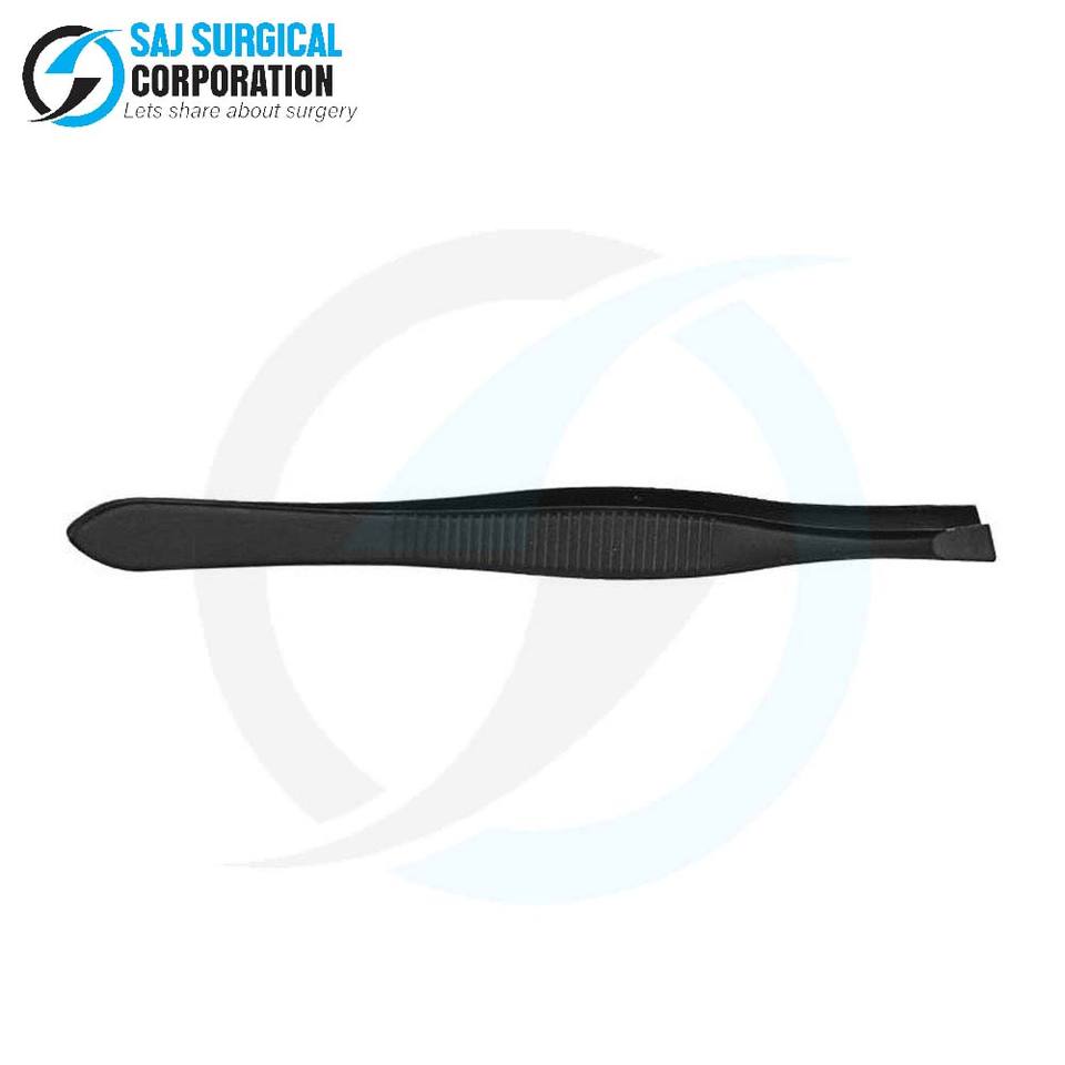 ด้ามจับสีดำแหนบปลายเอียงด้ามจับมีพื้นผิวตัดเพชรเพื่อการควบคุมที่ดีที่สุดในระหว่างงานกำจัดขนอย่างละเอียด