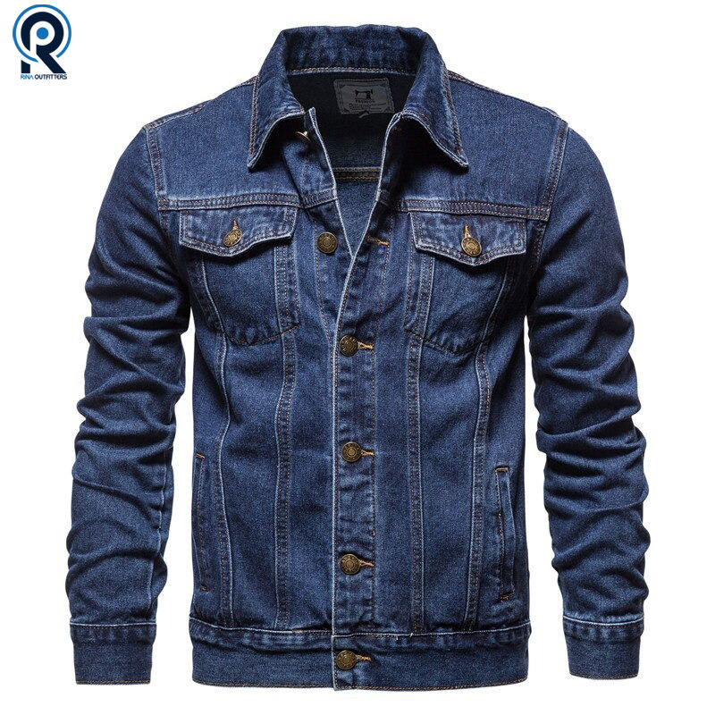 แจ็คเก็ตยีนส์ผู้ชาย 2022 ฤดูใบไม้ผลิสไตล์ใหม่ผ้าฝ้ายแฟชั่นสีฟ้าเสื้อแจ็คเก็ตยีนส์ลำลองผู้ชายทรงสลิม