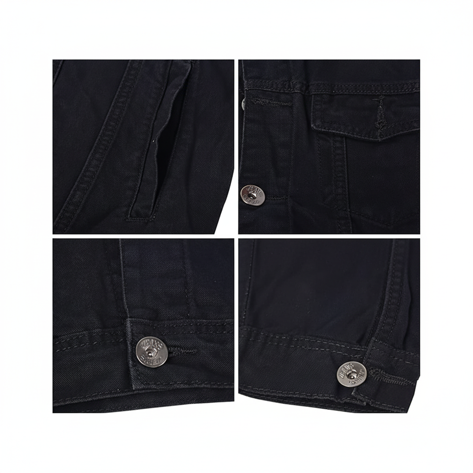 แจ็คเก็ตยีนส์ผู้ชายสำหรับฤดูหนาว คอตั้ง ทรงเข้ารูป ยืดได้ ใส่ได้สองด้าน แต่งขาดสไตล์วินเทจ คลาสสิก ลำลอง