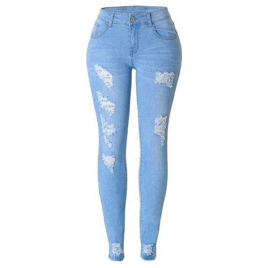 กางเกงยีนส์เอวสูงสำหรับผู้หญิงกางเกงยีนส์ของผู้หญิงกางเกงลำลองไซส์ XXL ผ้าคอตตอนฤดูใบไม้ผลิผ้าสแปนเด็กซ์ความฝัน