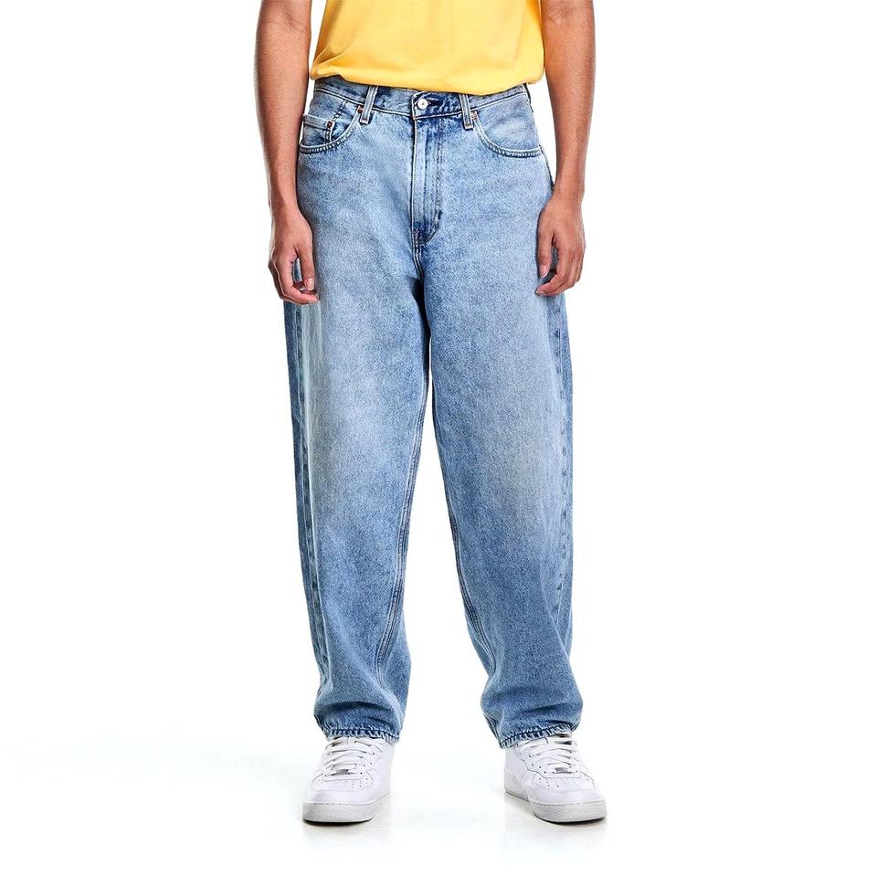 กางเกงยีนส์ทรงหลวมทรงแบ็กกี้ทรงหลวมกางเกงขายาวสีฟ้าอ่อนสไตล์คลาสสิกแนวสตรีท