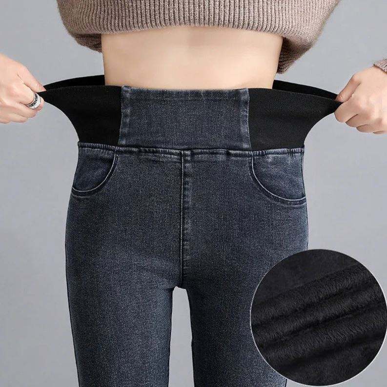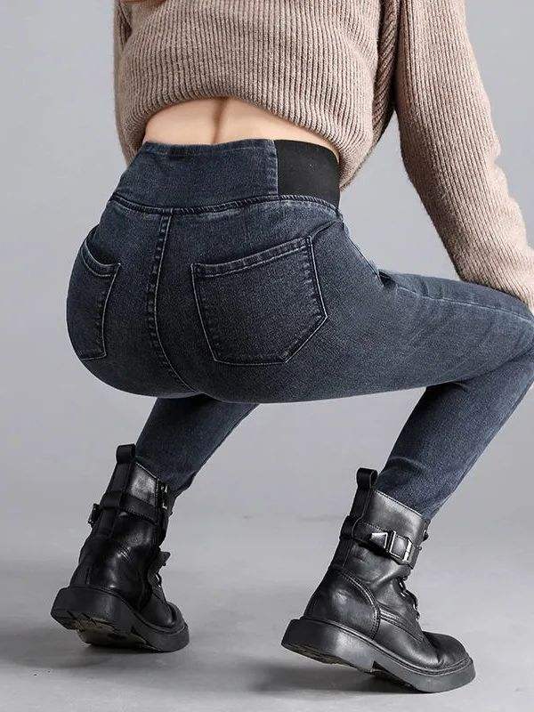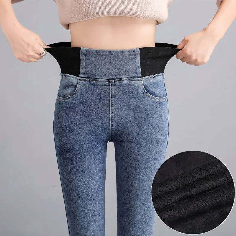 กางเกงยีนส์ผู้หญิง ทรงสกินนี่ เอวสูง ผ้ายืด สไตล์เกาหลี ลำลอง วินเทจ สำหรับฤดูใบไม้ผลิและฤดูใบไม้ร่วง