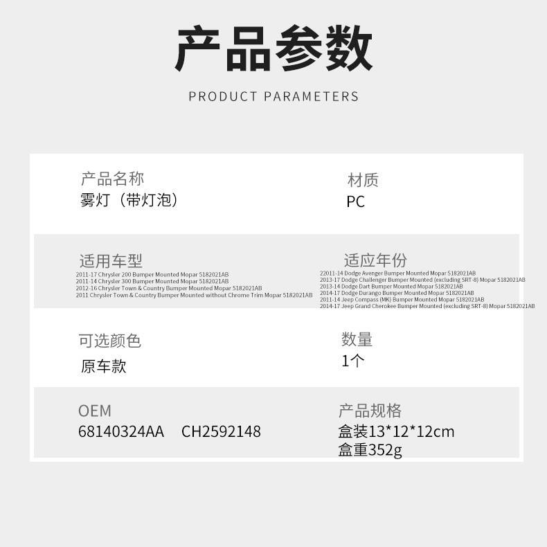 ไฟตัดหมอกหน้ารถจี๊ปคอมพาส 68140324AA ไฟฮาโลเจนสำหรับรุ่นปี 2011-2017