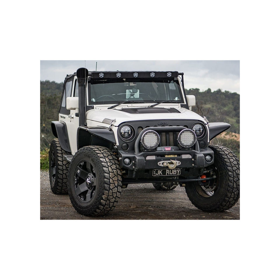 JEEP Wrangler กันชนหน้าแบบปิดถนนเครื่องกว้านเหล็กด้านหลังพร้อมทนทานงานหนักป้องกันแรงกระแทกสูง