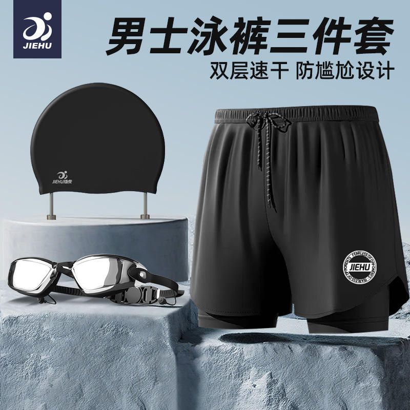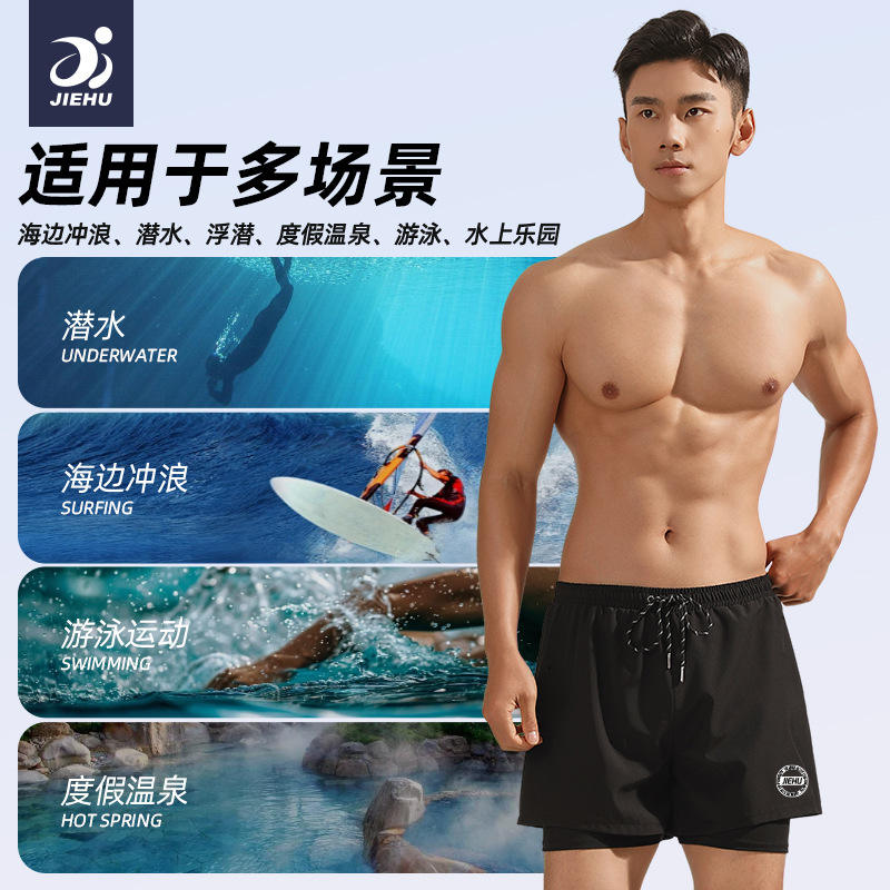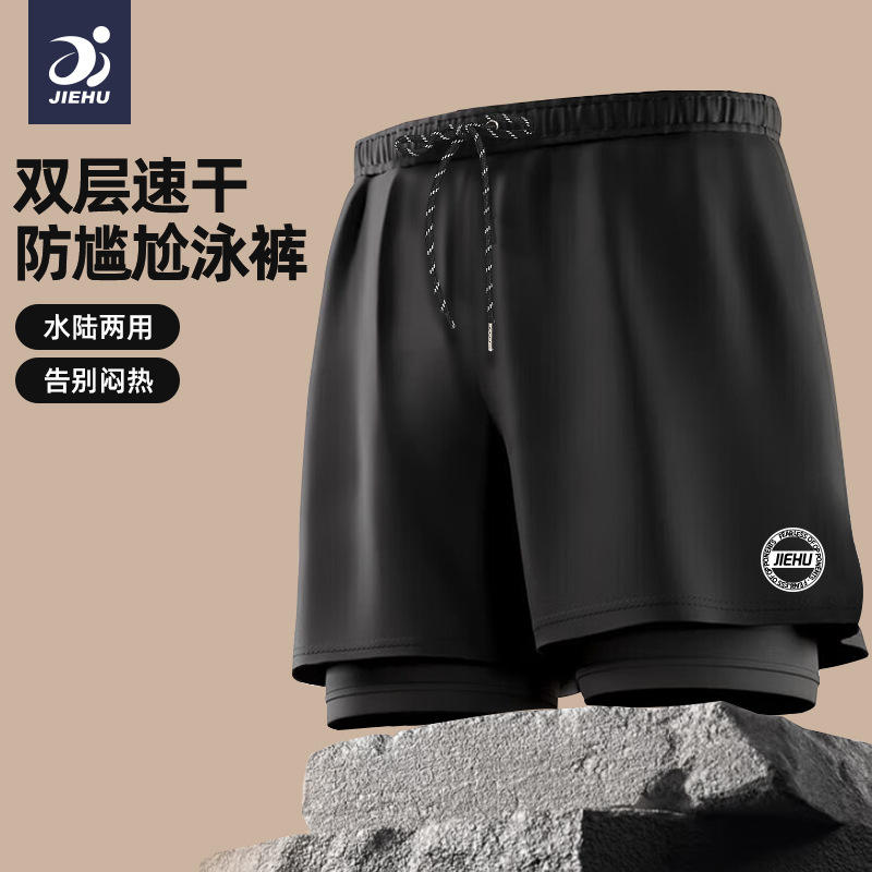 กางเกงว่ายน้ำผู้ชายเจฮูสีทึบ แห้งเร็ว สองชั้น สำหรับชายหาดและล่องแก่ง ขนาดผู้ใหญ่