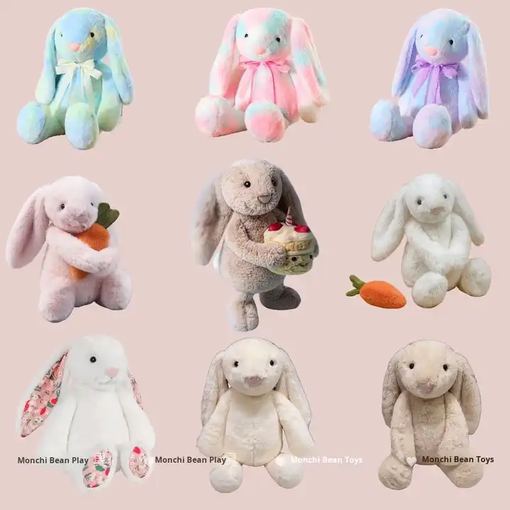 ตุ๊กตากระต่ายหูยาวเจลลี่แคท ดีไซน์กอดได้ ของขวัญแต่งงาน ไส้ใยฝ้าย PP วัสดุขนสั้น ขนาด 31-50 ซม.