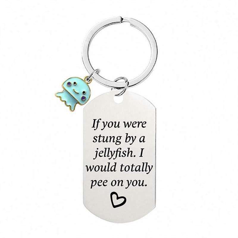 พวงกุญแจแมงกะพรุนพวงกุญแจโลหะสแตนเลสของขวัญถ้าคุณถูกต่อยโดยแมงกะพรุนขนาดเล็กฉันจะฉี่