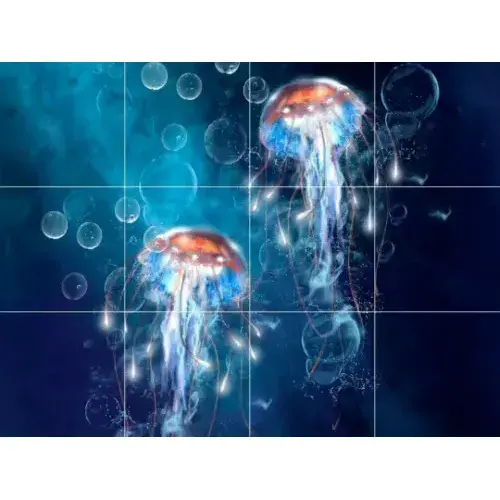 ภาพจิตรกรรมฝาผนังกระเบื้องเซรามิกรูปปลาเขตร้อนสำหรับห้องครัวหรือห้องน้ำที่กันน้ำมันกระเด็น