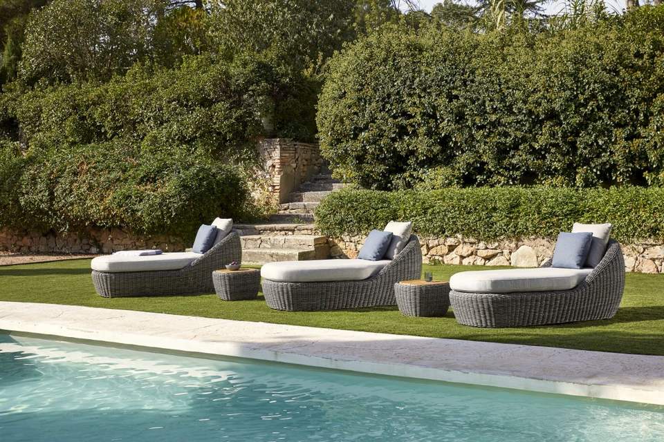 เก้าอี้อาบแดดเจมา ทำจากหวายถักคุณภาพดี พร้อมเบาะนุ่มสำหรับใช้งานกลางแจ้ง ตกแต่งแบบธรรมชาติ